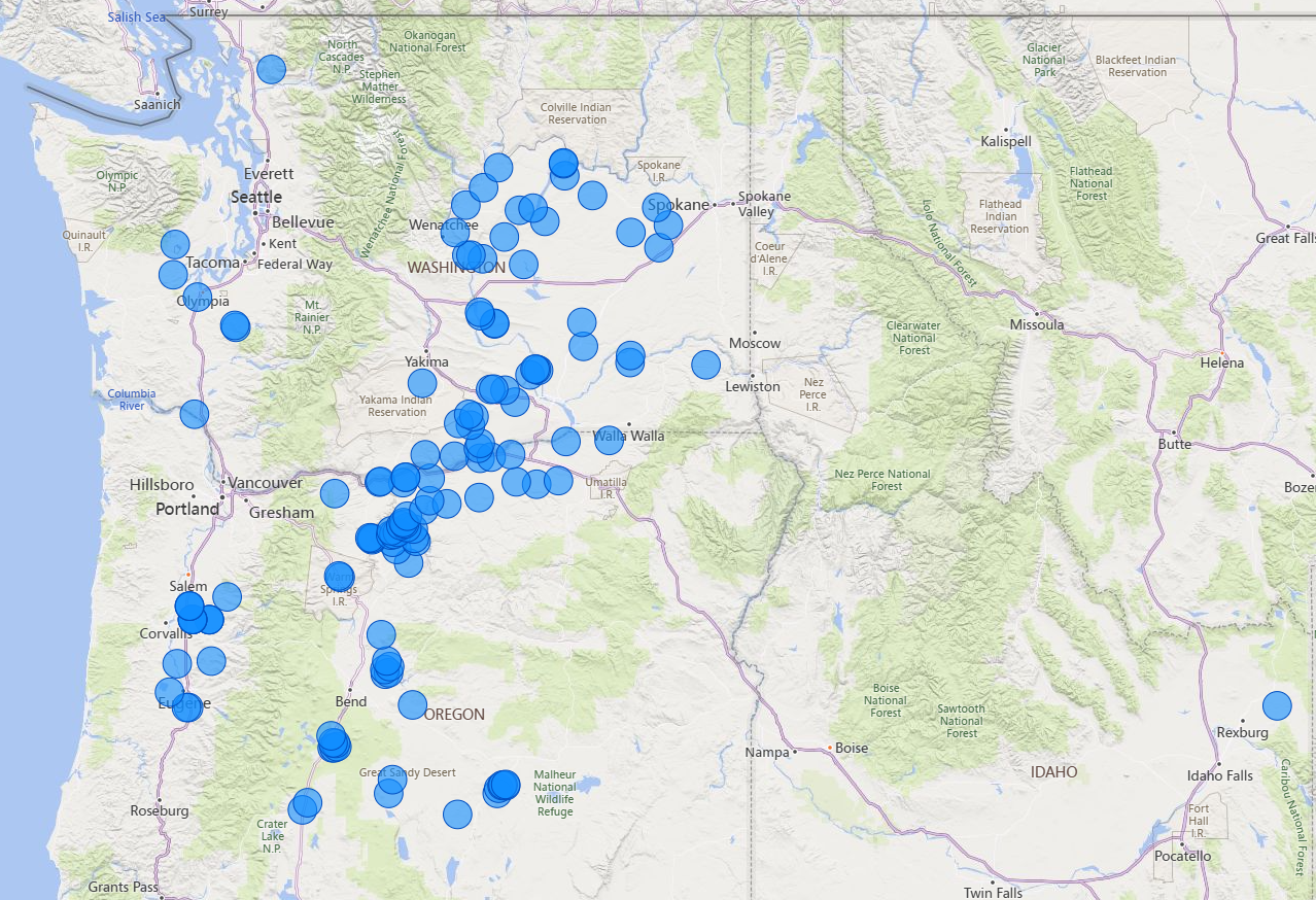 Here is the map of requests being studied in the Transition Phase 1 Cluster Study: